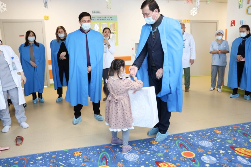 В завершение встречи Асхат Берлешулы поздравил детей с наступающим Новым годом и вручил им праздничные подарки. Медицинскому персоналу аким поручил продолжать развитие качества детской медицины с применением современных технологий.