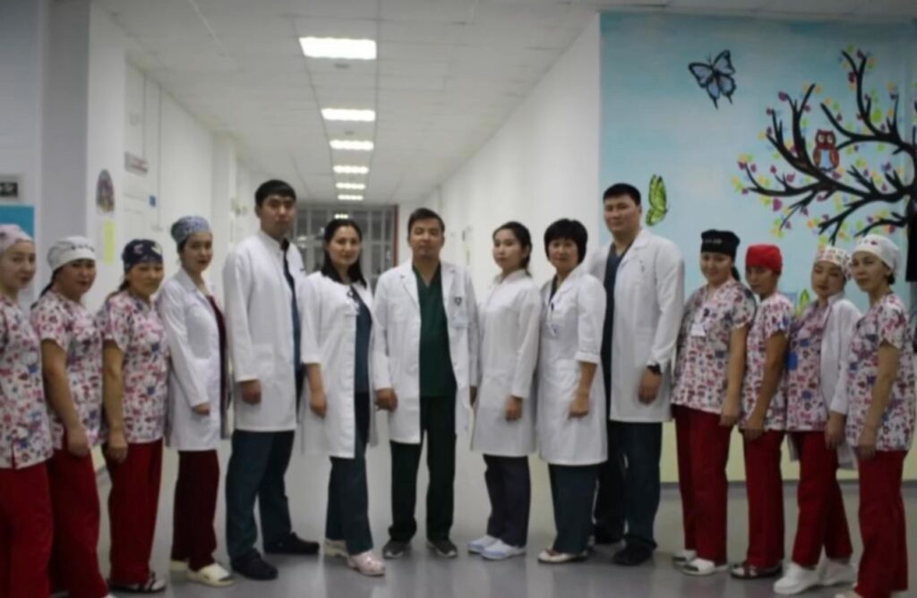 Кардиохирургическое отделение многопрофильной областной детской больницы на сегодня является единственным кардиохирургическим центром Западного региона. Начавшая свою деятельность в 2015 году кардиохирургическая служба области в этом году отмечает свой 10 – летний юбилей. За 10 лет работы отделения нашим маленьким пациентам проведено более тысячи операций на сердце. Только за последние 3 года было спасено более 400 детей, из которых 160 пациентам с тяжелейшей патологией сердца были проведены высокотехнологичные операции на уровне мировых стандартов — «открытая вальвулопластика клапана легочного ствола без его замены», «полное восстановление транспозиции магистральных сосудов», «полное восстановление аномального соединения легочных вен», «резекция аорты с анастомозом». В прошлом году впервые в западном регионе в больнице внедрены ряд уникальных оперативных вмешательств: «Создание неолегочного клапана из ушка правого предсердия» при лечении детей с тетрадой Фалло и атрезии клапана легочной артерии (на сегодня данная высокотехнологичная операция по иранской методике, проведенная впервые в мире в 2019 году, проводится только специалистами Астаны, нашими специалистами проведено 4 операции), интервенционные операции по коррекции коарктации аорты у детей. В ближайшей перспективе на базе нашего кардиоцентра планируется открытие регионального межобластного Центра кардиохирургии согласно Меморандума между Акимом области и МЗ РК. Коллектив отделения представляет собой слаженную команду врачей, объединенную единым стремлением дальнейшего совершенствования кардиохирургической помощи детям: Достан Алибиевич Амирадинов, Мұратқызы Мөлдір, Махаббат Мурадовна Умбеткулова, Алима Абдугаппаровна Ботбаева, Оксана Сергеевна Дмитрук. Руководит отделением Ануар Сагидуллаевич Досмагамбетов, кардиохирург, первым заложивший фундамент детской кардиохирургической службы всего Западного региона, главный детский кардиохирург Актюбинской области. Средним медицинским персоналом руководит Гульмайраш Маденовна Нуртазина.